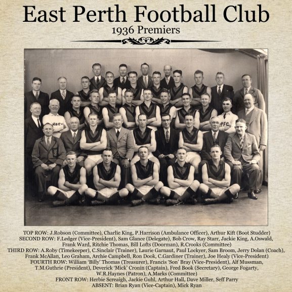 - 1936East Perth 6.2 6.3 7.3 11.5 (71)